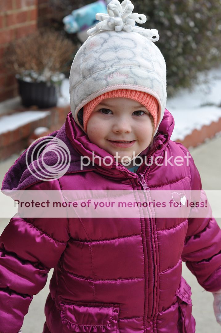 Now, look carefully at Winnie's AND Eden's face. Winnie is eating ice/snow and discovering it's cold. Eden is discovering that mittens get stuck to very cold ice. I love how you see the beginnings of mild panic on Eden's face.